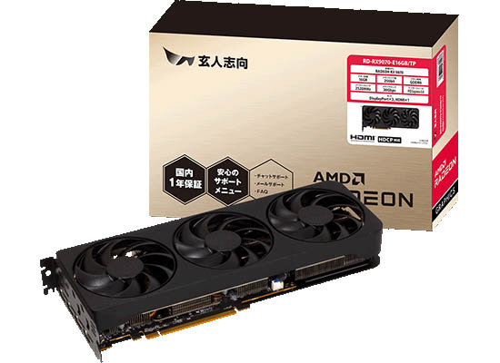 RD-RX9070-E16GB/TP | 玄人志向 Radeon RX 9070 トリプルファン搭載 グラフィックボード
