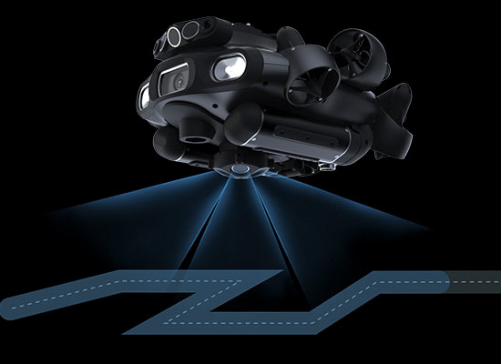 Q-DVLホバリングシステムを搭載している水中ドローンは、水中でドローンの位置をロックし、水中作業環境からの干渉に対して正確にホバリングが可能です。