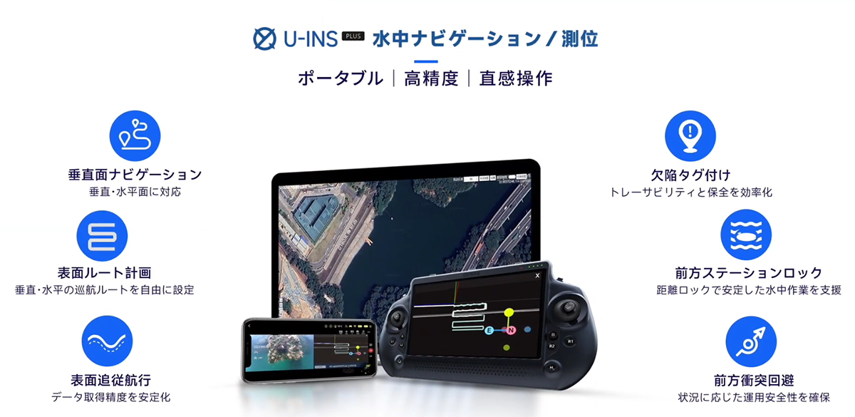 水中インフラ点検の効率化、コスト削減、安全性向上に、QYSEA水中ドローンとU-INS Plusをご活用いただけます。
