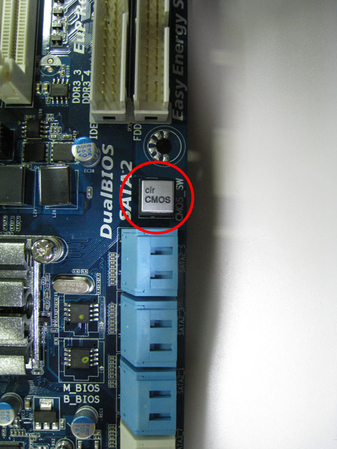 IOポート内または、マザーボード基板上のクリアリングCMOSボタンを押します。