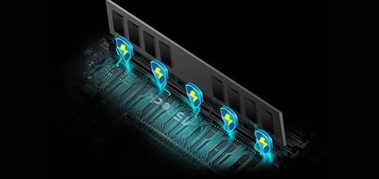 強化されたメモリDIMMスロットは、マザーボードに表面実装されており、優れた物理的強度と安定したメモリ信号を実現します。