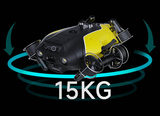 FIFISH W6 MAXは、4.5ノットの走行性能で、強潮流下でも安定して作業でき、強い推進力で、15kgの高ペイロード可能です。