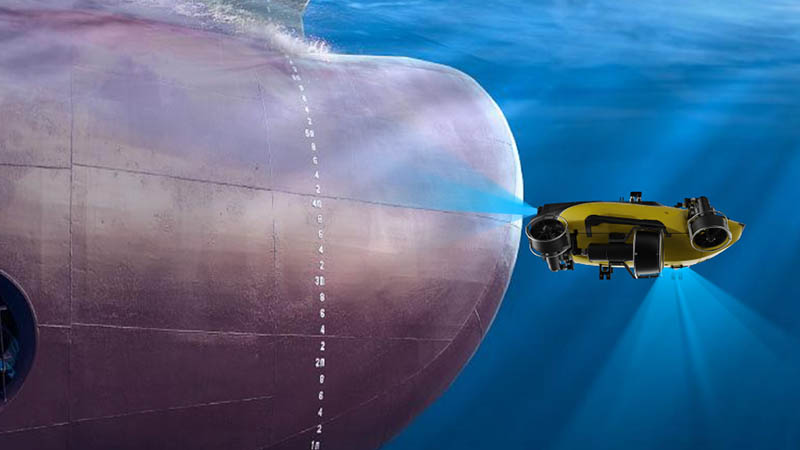 水中検査の安全性は最重要です。前方および下方の Q-DVL ソナーモジュールはインテリジェントな衝突回避機能を備え、ソナーで取得した高精度の距離データを AI アルゴリズムで解析します。これにより衝突リスクを高感度に識別し、ミリ秒単位で先行予測が可能です。