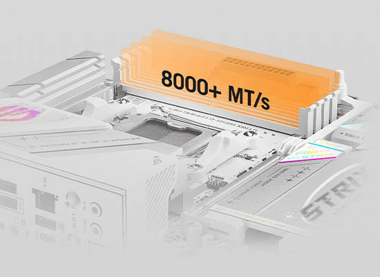 オンボードのM.2スロットのうち1つは、PCIe 5.0インターフェースにより、驚異的な16GB/秒の読み書き速度を実現。その他のスロットも、依然として驚異的な8GB/秒の転送速度を実現しています。