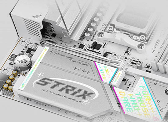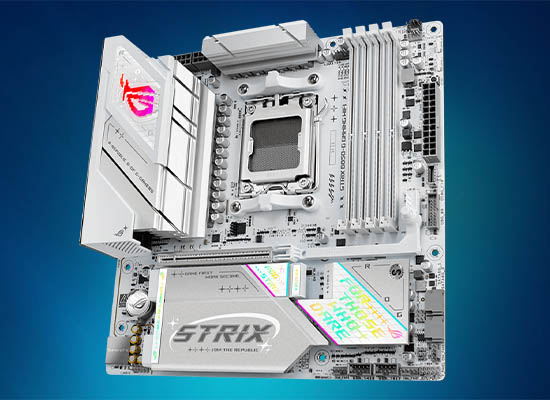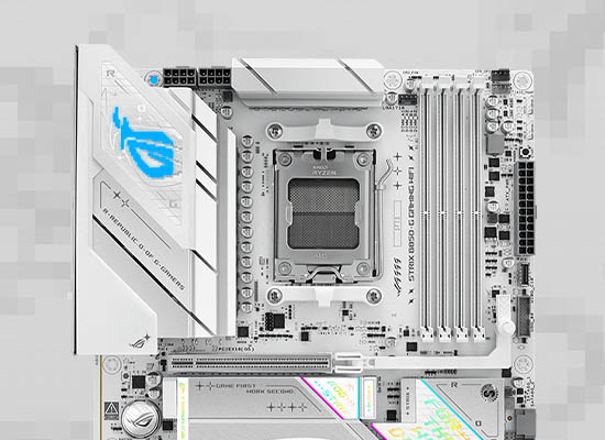 Strix B850マザーボードは、オンボードのUSB 20Gbpsに強力なオーバークロック¹機能を搭載し、デュアルチャネルによる高速DDR5メモリ、AMD EXPOとPCIe 5.0がグラフィックスとNVMeをサポート。