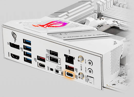 1 x USB 20Gbps ポート (1 x USB Type-C®) 3 x USB 10Gbps ポート (2 x Type-A + 1 x USB Type-C®) 4 x USB 5Gbps ポート (4 x Type-A) 2 x USB 2.0 ポート (2 x Type-A) 1 x DisplayPort 1 x HDMI™ ポート 1 x Wi-Fi モジュール 1 x Intel® 2.5Gb イーサネット ポート 2 x オーディオジャック 1 x 光デジタル出力 (S/PDIF) ポート 1 x BIOS FlashBack™ ボタン 1 x CMOS クリア ボタン |