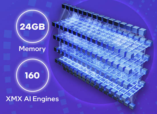24GBの専用メモリ、最大456GB/sの帯域幅、160基のXMX AIエンジンを搭載したIntel Arc Pro B60 GPUは、AI、ジェネレーティブデザイン、3Dシミュレーション、レイトレーシング、編集作業など、現代のプロフェッショナルプロジェクトで必要とされる大容量メモリと処理性能に最適化されています。