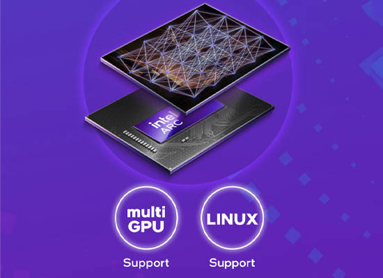 Intel Arc Pro B60 GPUのLinuxマルチGPU LLMサポートにより、より大規模で高度なAIに最適化されており、高品質かつ高速な出力を実現するスケーラブルな性能を実現します。