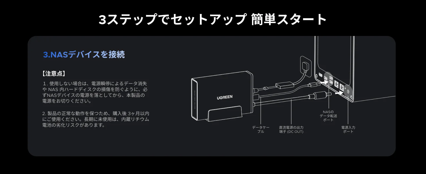 US3000 (45615) | UGREEN NAS用 120W 12000mAh UPS (無停電電源装置)