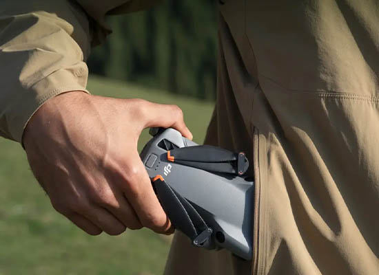 Mini 5 Proは超軽量で手のひらサイズの折りたたみデザインを採用しており、バックパックにも簡単に収納可能です。また、42GBの内蔵ストレージにより、途切れない飛行体験を楽しめます[1]
