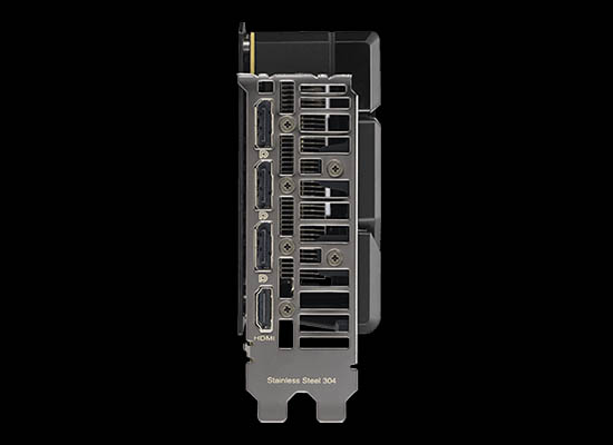 グラフィックボードに取り付けられているブラケットは、強度と耐腐食性の高さから選ばれたグレード304のステンレススチールを採用しています。