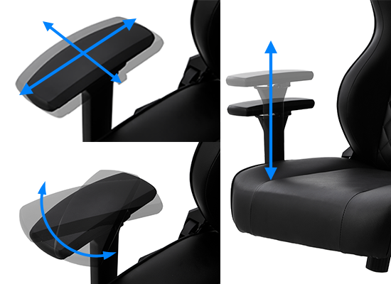 4Dアームレストを採用し、上下左右前後内外に調整することで、ひとりひとりに合ったポジション設定が可能です。