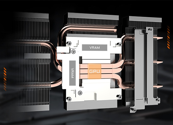 GPUの熱を素早くヒートシンクへ送り込み、グラフィックボードを効果的に冷却します。