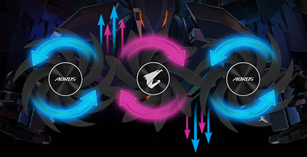 Max-Covered クーリングは、ウィンドクローデザインとオルタネイトスピンの3基のオリジナルブレードスタックファンを搭載した大型空冷ファンです。ヒートシンク全体をカバーし、高い冷却性能を発揮します。