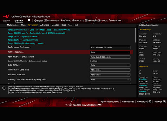 定評あるROG UEFI(BIOS)は、PCの構成、微調整、調整に必要なすべてを提供します。 PC DIYの初心者向けにインテリジェントに簡素化されたオプションと、経験豊富なエキスパート向けの包括的な機能を提供します。