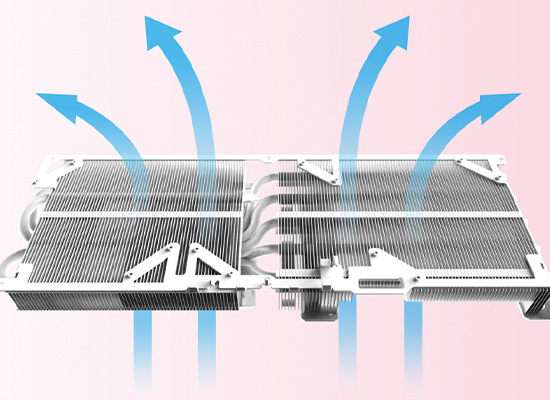 垂直のフィンと大型ヒートシンクはぴったりと取り付けられており、気流が効率的に熱を分散。優れた放熱性能を発揮します。