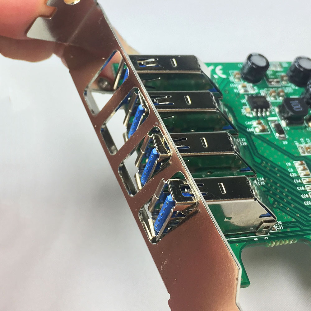 ②USBポートの先端全てをロープロファイルブラケットの穴に通してください。