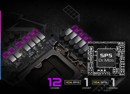 電流と温度を監視し、調整された電力をCPUに共有することで、パフォーマンスやOC性能を高めます。