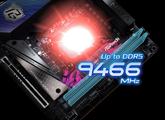 - デュアルチャネル DDR5 メモリ テクノロジー - 2 x DDR5 DIMM スロット - DDR5 non-ECC、アンバッファード・メモリに対応 最大 9466+(OC)* - システムメモリの最大容量: 128GB - Intel® XMP 3.0 対応 *1DPC 1R 最大 9466+ MHz (OC)、6400 MHz ネイティブ 1DPC 2R 最大 6800+ MHz (OC)、6400 MHz ネイティブ |