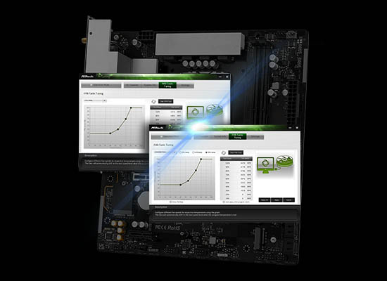 ASRock Fan-Tastic Tuning機能により、ワンクリックで各ファンの最小動作回転数を自動検出できます。