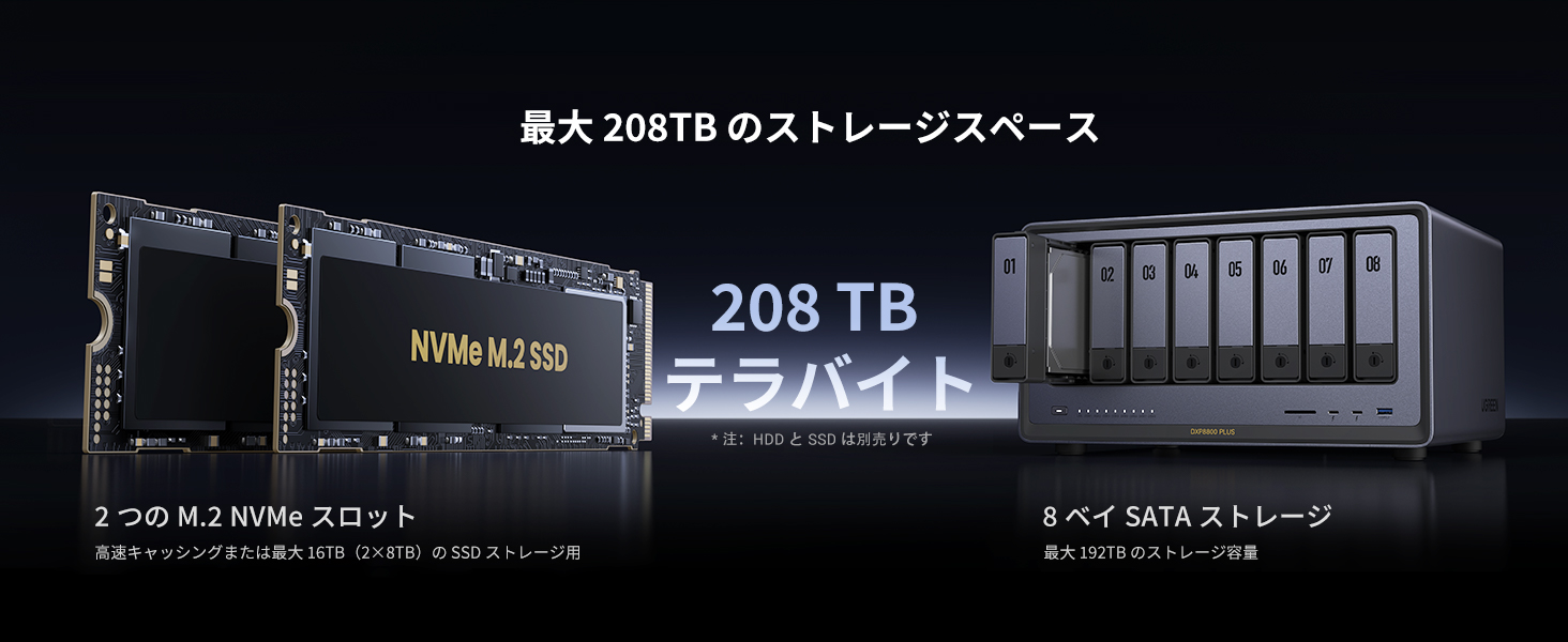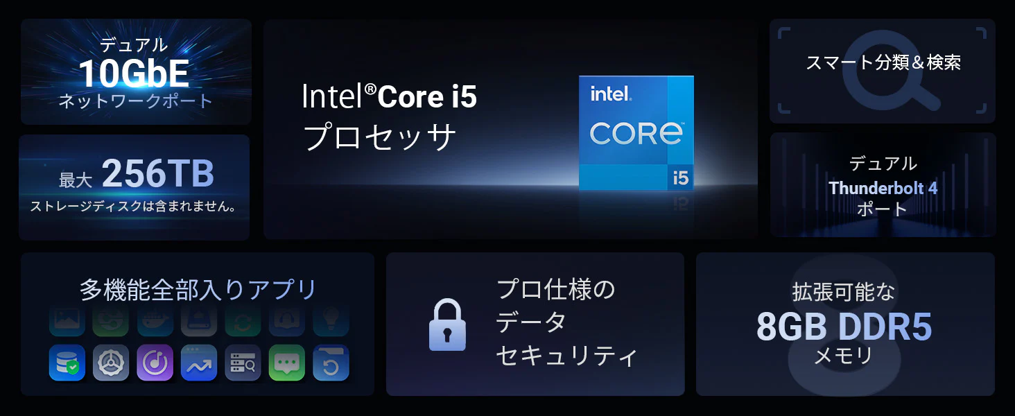 最大ストレージ容量:256TB (8x 30TB + 2x 8TB)