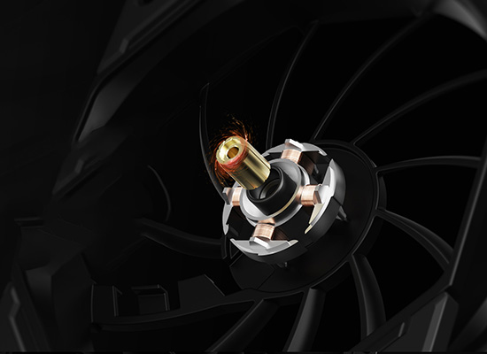 先進的で耐久性に優れた油圧ベアリングを採用した12cm PWMファンは、500~1800rpmの回転速度で卓越した冷却性能を発揮。四辺に防振ゴムパッドを配置し、最小限の騒音に抑えています。