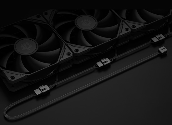 各ファンはオス・メスコネクタで直接接続され、デバイスチェーンを形成します。また、延長ケーブルを統合したスマートネットワークでケーブルの煩雑さを軽減します。