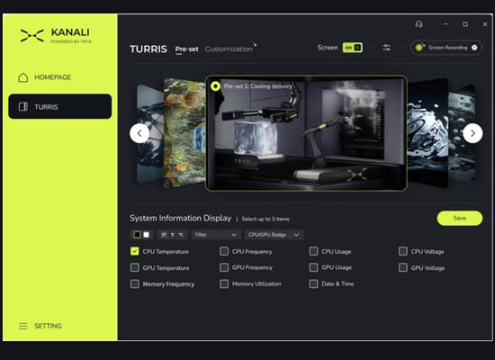 KANALI によるダイナミックな内蔵プリセットを備え、ワンクリックで即座に表示を切り替え可能。