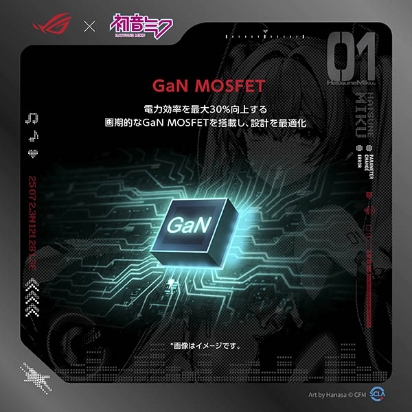 ROG Thor 1200W Platinum III Hatsune Miku Editionは、標準的なMOSFETと比較して最大30%の電力効率向上を実現する革新的なGaN MOSFETを搭載しています。