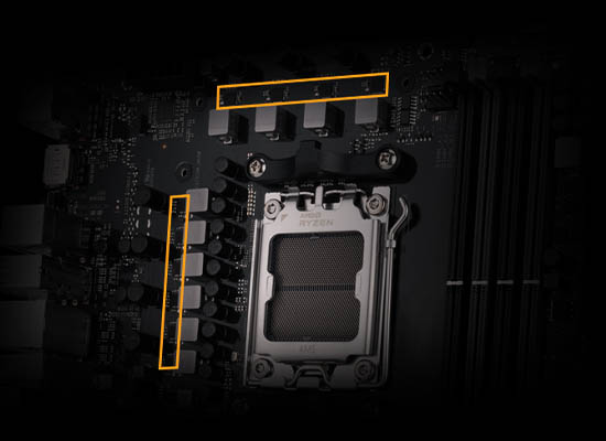 搭載されたDigi+電圧レギュレータモジュール(VRM)は、業界最高クラスのVRMの1つで、常にCPUにクリーンな電力をスムーズに供給できるよう最適化されています。