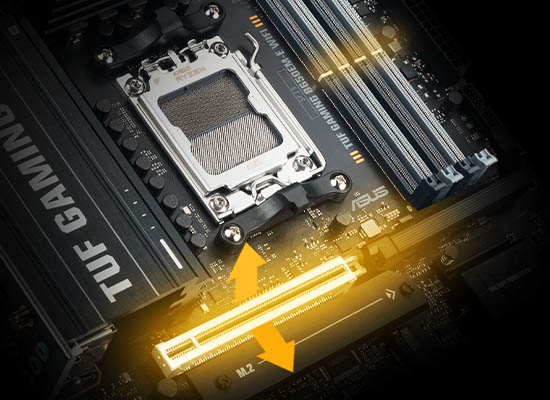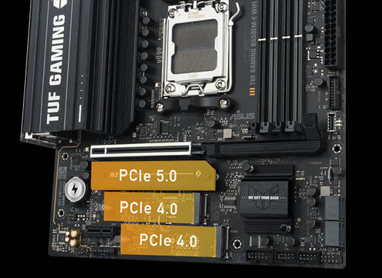 TUF GAMING B650E マザーボードは、最新の PCI Express に対応することで、さらなるパフォーマンスの可能性を引き出します。