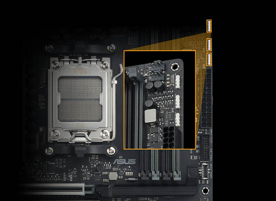 TUF GAMING B650E マザーボードでは、超高速メモリキットはもちろん、通常は制限されがちなエントリークラスの構成であっても、DDR5 メモリモジュールが持つ性能を余すことなく引き出すことが可能です。