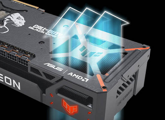 この限定版スペシャルエディションのグラフィックスカードは、ASUS、AMD、そしてCall of Duty®: Black Ops 7のコラボレーションによるものです。カスタマイズされた筐体とバックプレートには、Black Ops 7のアイコンやBlack Opsスタイルを象徴するオレンジ色のアクセントなど、Black Ops 7の要素と図像があしらわれています。内部には、AMDの最新RDNA 4アーキテクチャ、16GBのVRAM、HYPR-RX™機能セット、そして機械学習を活用した超解像モードを備えた、定評のあるRadeon™ RX 9070 XT GPUが搭載されています。