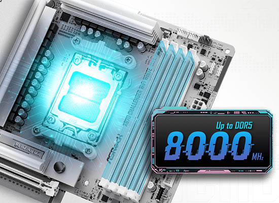 - DDR5 ECC/non-ECC、アンバッファード・メモリに対応 最大 8000+(OC)*